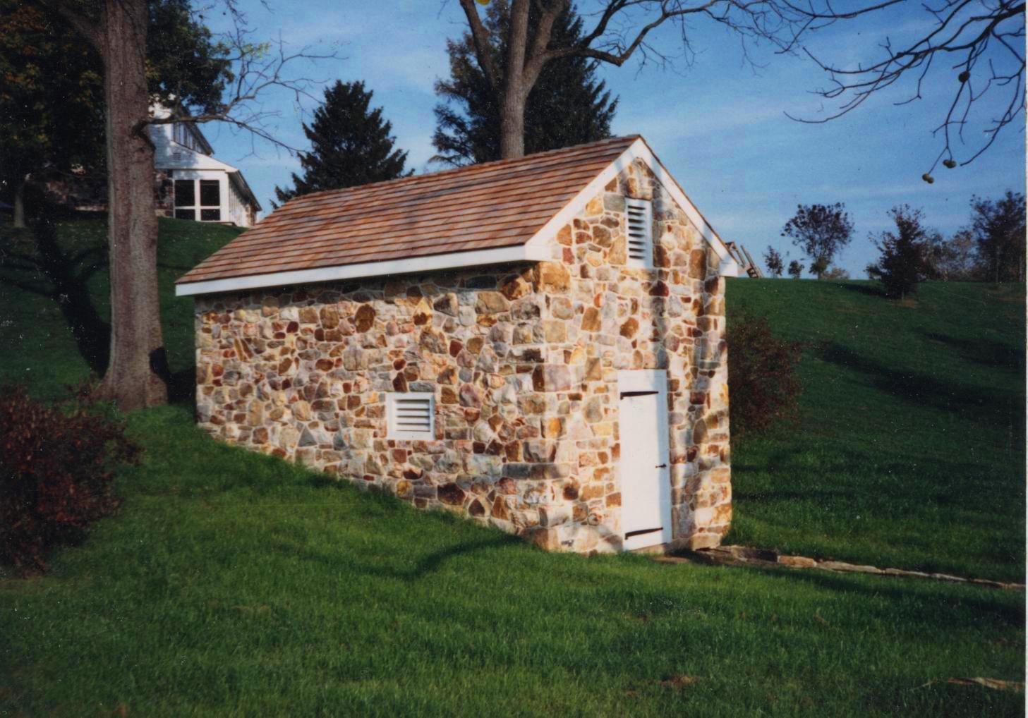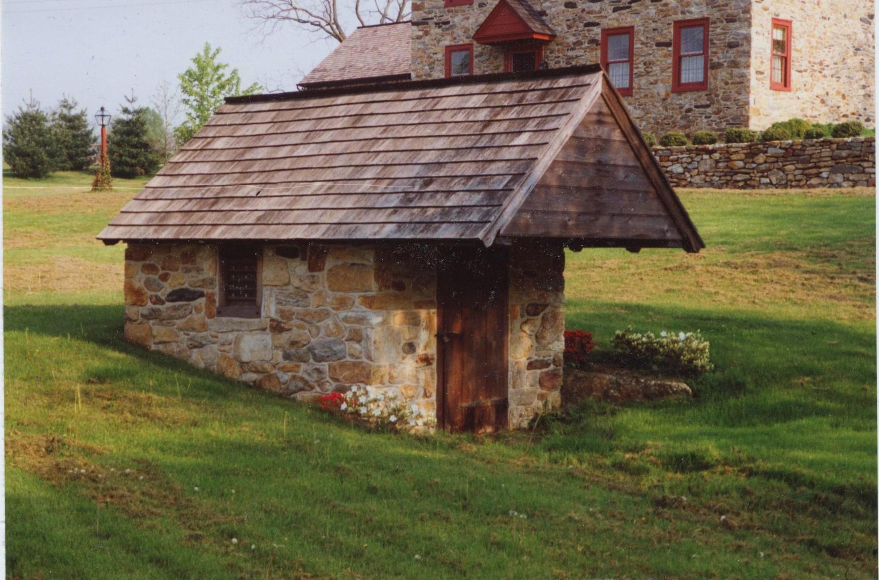 Unfortunately, over the years many spring houses have deteriorated or been demolished. Spring houses were a vital part of each home at one time, used to store perishables by keeping them cold, as well as providing a protected source of clean drinking water. Most have their own unique architecture that really adds to the aesthetic and monetary value of the property. Here are a couple of spring house examples from those we have restored and reproduced over the years.